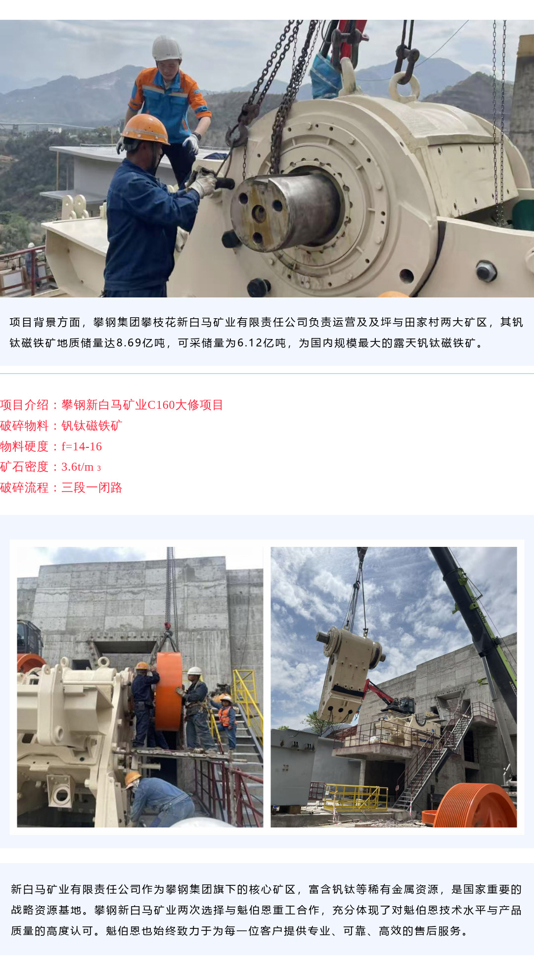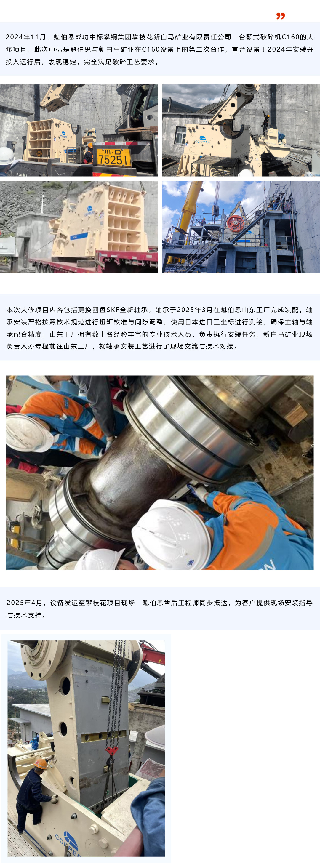 魁伯恩攀鋼新白馬顎破C160大修項(xiàng)目調(diào)試!
