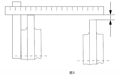 ?2、如下圖3所示,在輪轂突緣上兩個相互成90° 的位置放置一把直尺。并進(jìn)行調(diào)整,直到直尺平坦地落在兩個輪轂上。