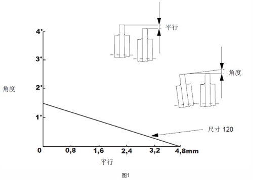 圖a所示兩軸絕對對中屬是理想狀態(tài), 對在線運轉(zhuǎn)設(shè)備始終保持軸線對中是難以達(dá)到理想狀態(tài)的;各部位的不均勻膨脹、軸的彎曲、軸承的游隙、破碎機(jī)旋轉(zhuǎn)的動不平衡等原因,都可能造成聯(lián)軸器在運轉(zhuǎn)不對中的現(xiàn)象發(fā)生,所以在設(shè)備制造、安裝、檢修中都規(guī)定有允許的偏差值,因此,設(shè)備靜態(tài)下軸不對中聯(lián)軸器軸線位置偏差的控制顯得尤為重要。圖1為CH870彈性體聯(lián)軸器徑向和角向偏差繪制的線性圖。?