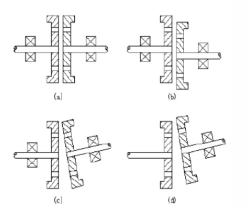 4、兩軸線不同心且不平行如圖d所示