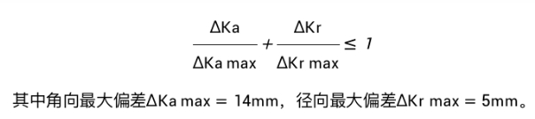 圖a所示兩軸絕對對中屬是理想狀態(tài), 對在線運轉(zhuǎn)設(shè)備始終保持軸線對中是難以達(dá)到理想狀態(tài)的;各部位的不均勻膨脹、軸的彎曲、軸承的游隙、破碎機(jī)旋轉(zhuǎn)的動不平衡等原因,都可能造成聯(lián)軸器在運轉(zhuǎn)不對中的現(xiàn)象發(fā)生,所以在設(shè)備制造、安裝、檢修中都規(guī)定有允許的偏差值,因此,設(shè)備靜態(tài)下軸不對中聯(lián)軸器軸線位置偏差的控制顯得尤為重要。圖1為CH870彈性體聯(lián)軸器徑向和角向偏差繪制的線性圖。?